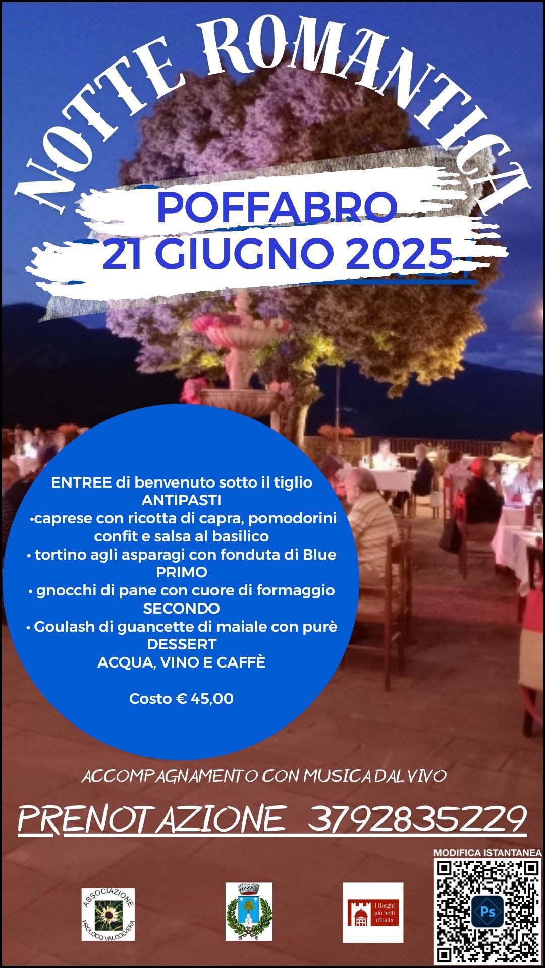 Quest’anno la magia del Solstizio d’Estate si tinge di rosa, con l’appuntamento con la Notte Romantica che si rinnova ancora una volta. Ci riuniremo attorno alla fontana della piazza di Poffabro sabato 21 giugno 2025, alle ore 19:30.